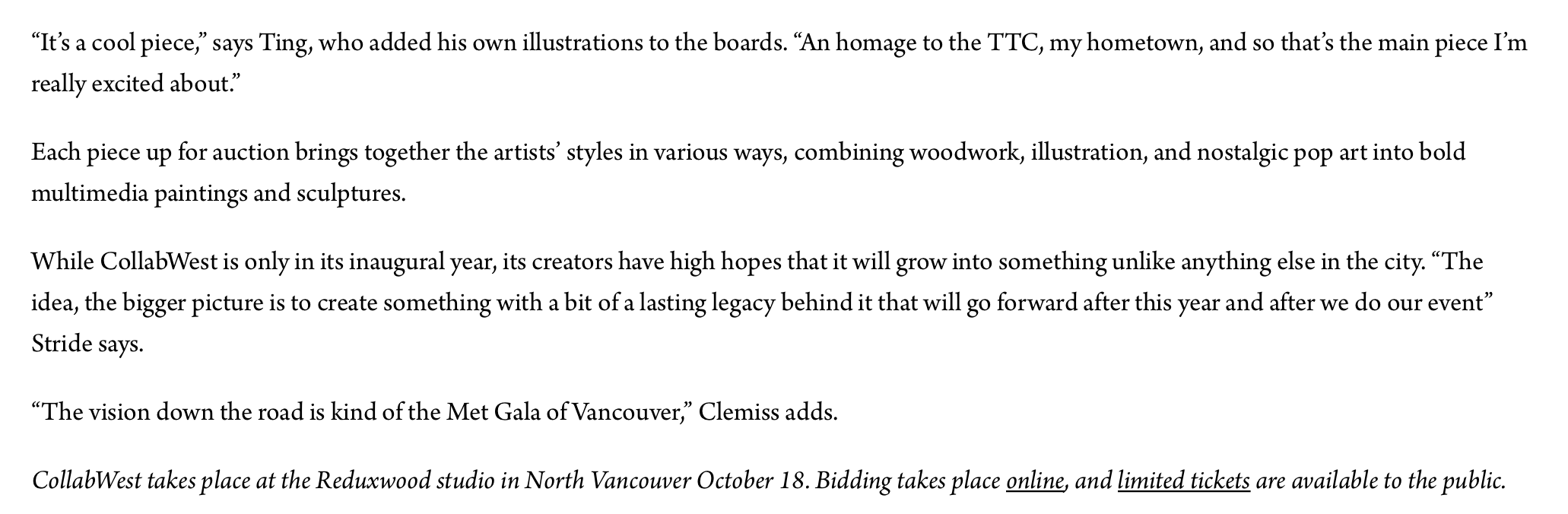 To purchase a limited-edition ticket watch CollabWest.ca for announcements.